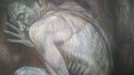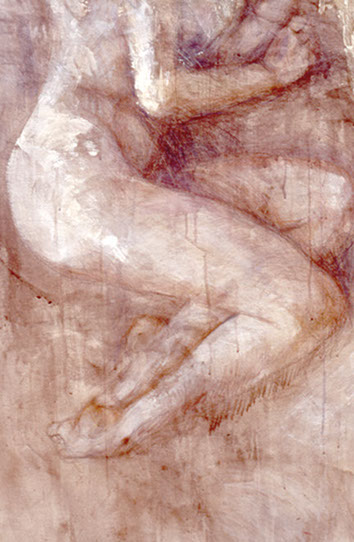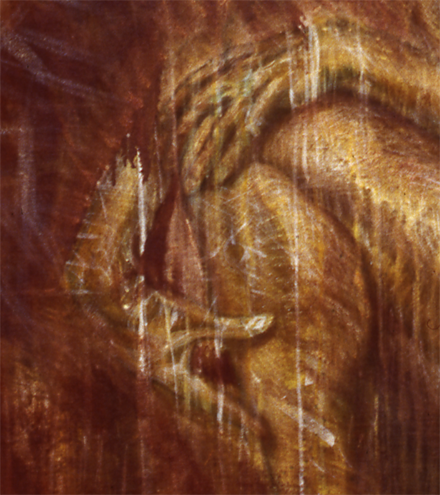 He Turns, detail, egg tempera and oil on canvas