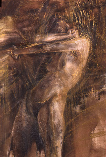 He Turns, egg tempera and oil on canvas, 35"x58"
